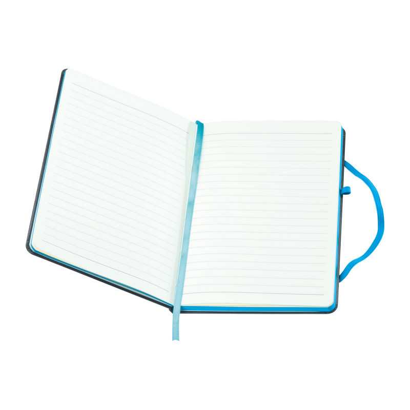 Blok A6 s doskami zo štrukturovanej PU kože, s gumičkou a 80 listovým linajkovým blokom.