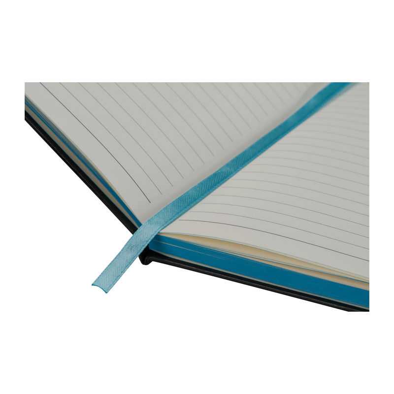 Linajkový zápisník veľkosti A5 so 160 stranami, záložkou a slučkou na pero.