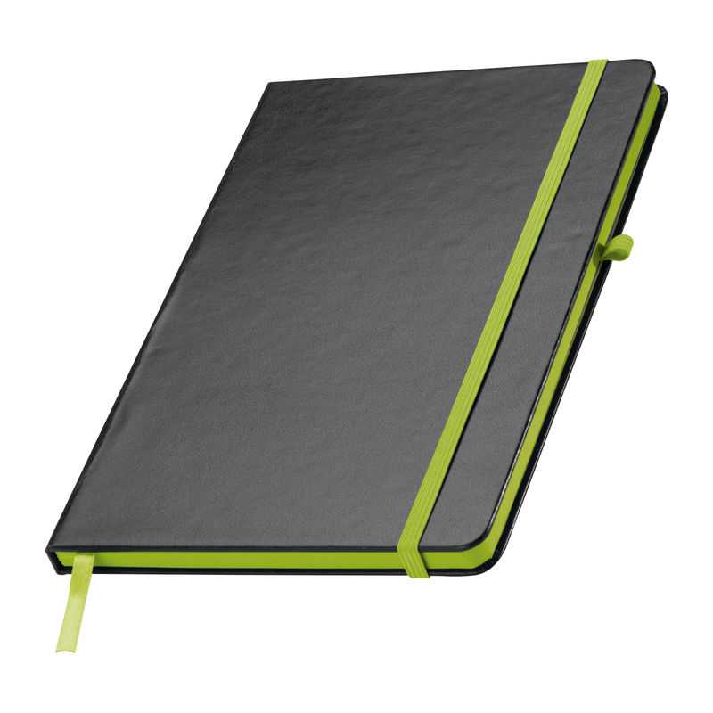 Linajkový zápisník veľkosti A5 so 160 stranami, záložkou a slučkou na pero.