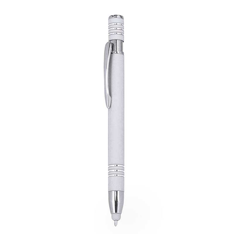 Plastové guľôčkové pero s modrou náplňou, protišmykovou úchopnou zónou, dotykovou funkciou a vstavaným LED podsvietením.