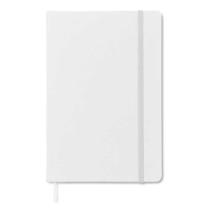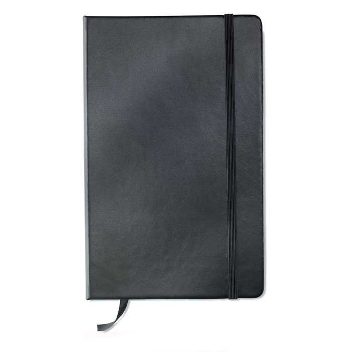 Zápisník A5 v tvrdých deskách s PU přebalem. 192 linkovaných stran (96 listů) recyklovaného papíru. Zavírací gumička a záložka v barvě.