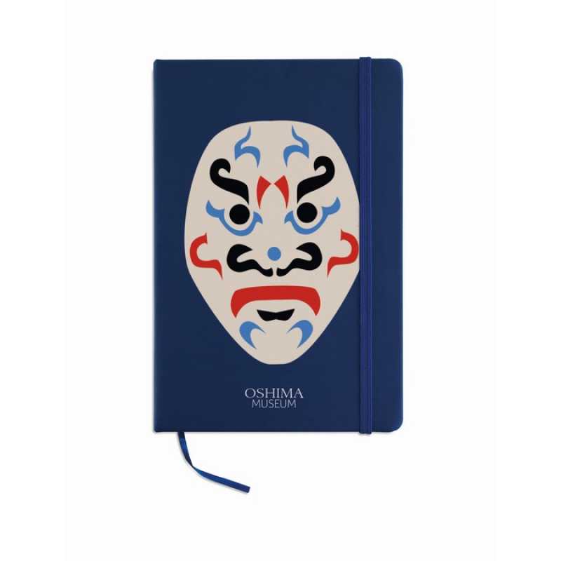 Recycled carton notebook (A5) with 160 lined pages. With elastic to keep closed and a ribbon bookmark in same colour.