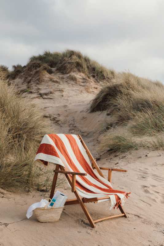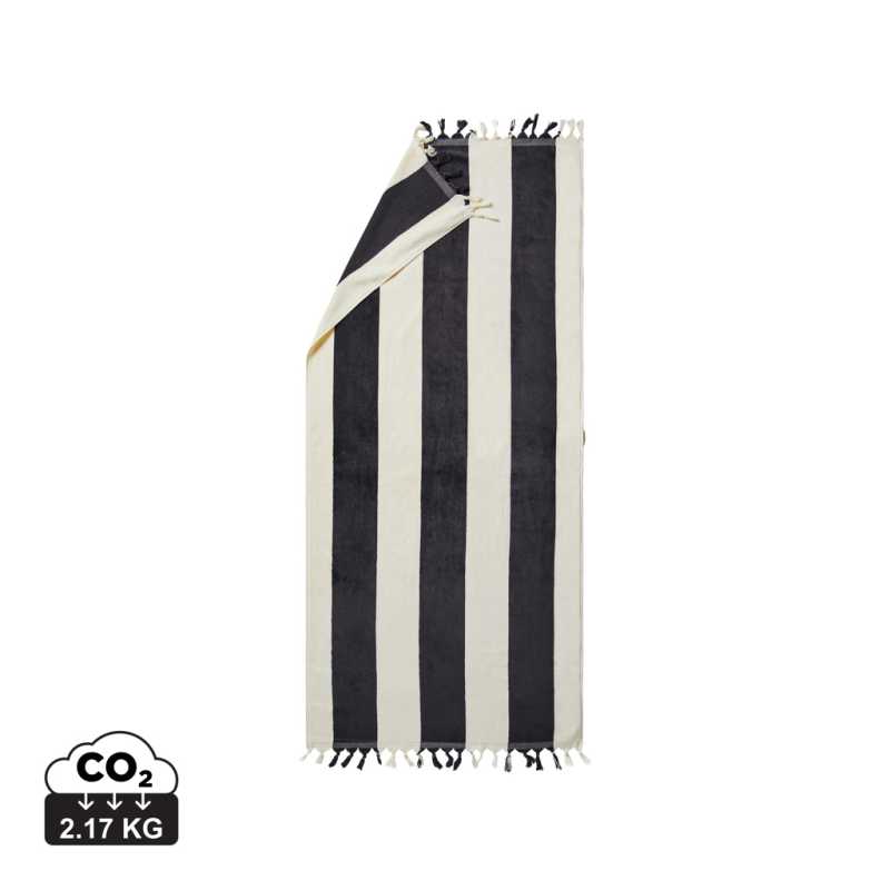 Luxusná osuška s priestorom na uchytenie na plážové lehátko. Stačí jednoducho prezliecť cez lehátko, na ktorom potom pevne drží. Pevnosť 450 g/m2. Vyrobené v Indii zo 100% organickej balvny.