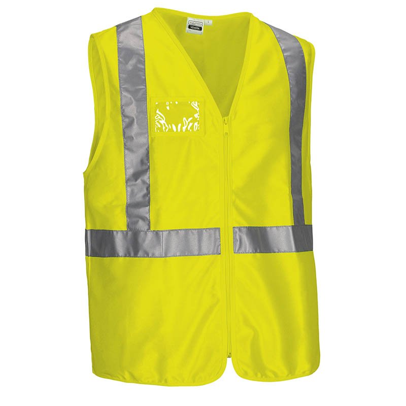 Lightweight High Visibility Safety Vest. Made of breathable and resistant ketten fabric, includes two vertical reflective tapes sewn on the shoulders and a horizontal one on the torso, also on the back, to enhance user visibility.Garment certified as a High Visibility Category II PPE based on 13688 and 20471 standards, class 2. Contour and armholes with piping for added strength and durability.V-neck with full-zip front closure for added comfort, also it includes a transparent left chest removable badge holder. Suitable marking methods: screen printing, embroidery, transfer printing, patches. Ideal as workwear and as a safety vest for vehicles and industry.