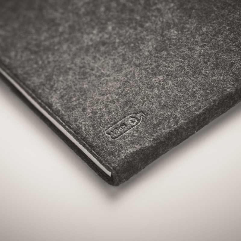 Originálny zápisník s obalom z recyklovanej plsti. Obal aj obsah tvoria GRS recyklované materiály. GRS (Global Recycle Standard) je globálny štandard, ktorý umožňuje overiť použitie recyklovaného materiálu v produkte naprieč celým dodávateľským reťazcom. Celkový podiel recyklátu podľa váhy produktu: 99%. Obsahuje 96 listov/192 strán linajkového papiera s gramážou 80 g/m2.
