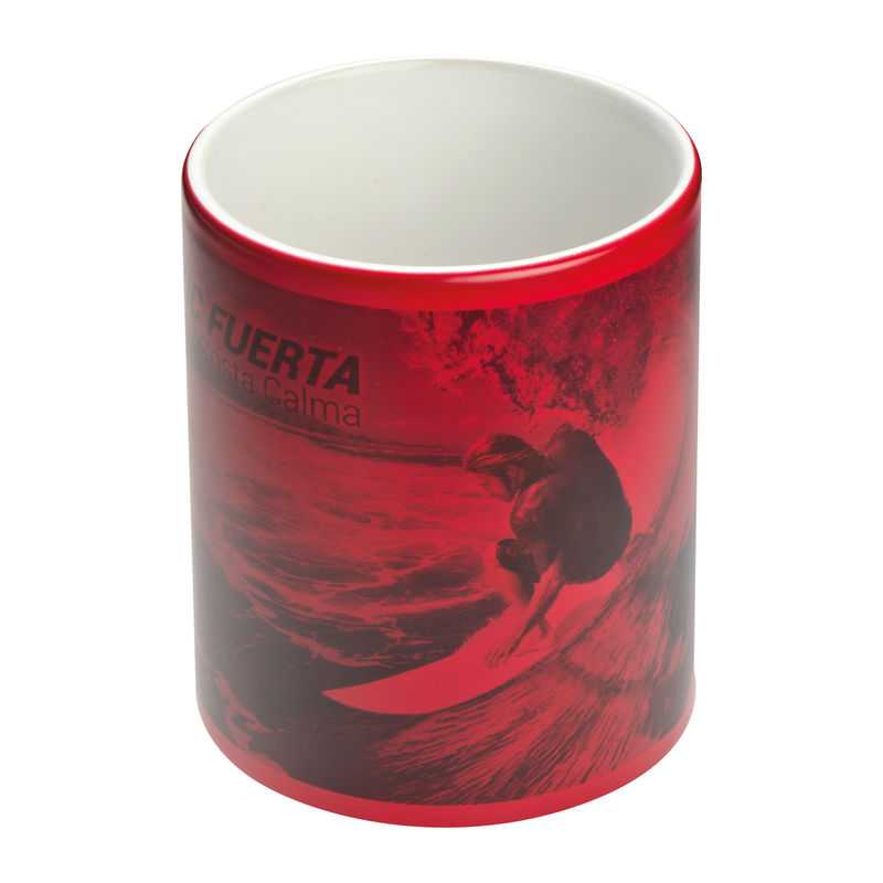 MAGIC sublimačný hrnček. Za studena je potlač čiastočne viditeľná pod farebným lakovaním. Akonáhle do neho nalejete horúci nápoj, zobrazí sa farebné logo.