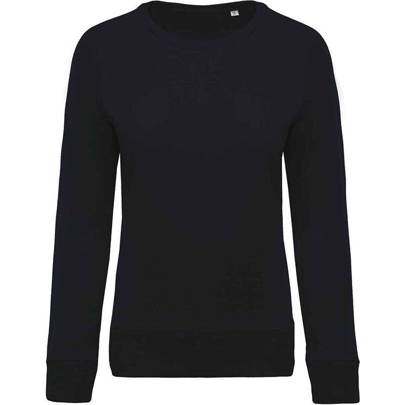 Crewneck sweater with half-moon in the neck. Brushed inside. Ribbed ending at sleeves and bottom hem. Oeko-Tex 100. Colors: 120 grey melange, 600 navy, 704 moss green, 900 black New version 85% organic cotton, 15% recycled polyester, 300 g/m2 Old version 80% organic cotton, 20% recycled polyester, 300 g/m2 XS-XXL