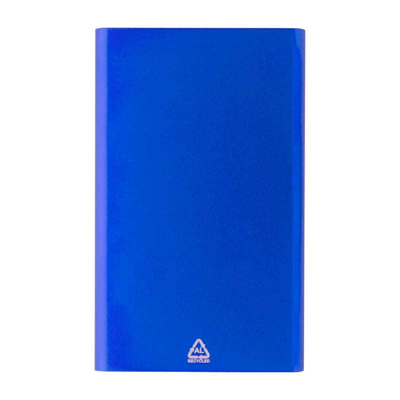 USB power banka v puzdre z recyklovaného hliníka s 4000 mAh batériou. S 1 portom USB a 1 portom USB-C pre nabíjačku. Vstupný port USB-C. Vrátane USB nabíjacieho kábla.