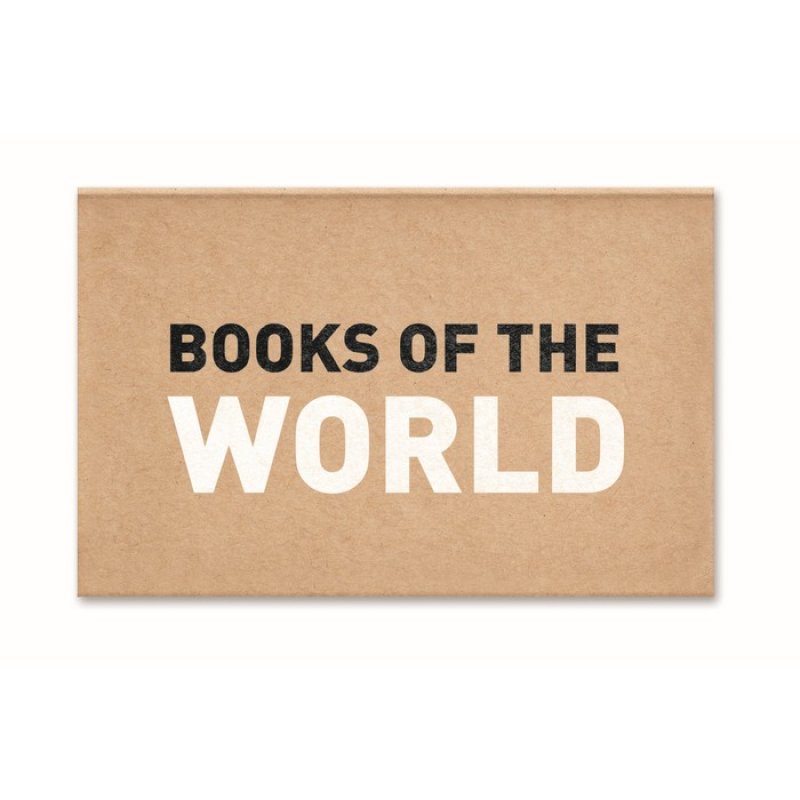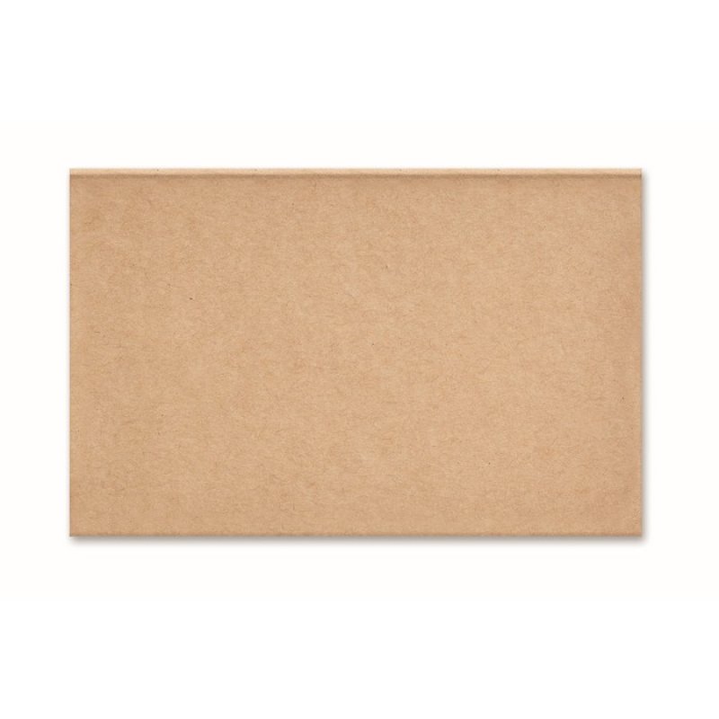 Stolní set s kalendářem. Velké žluté lepící lístky z recyklovaného papíru a 5 různě barevných označovačů. 4 letý kalendář na vnitřní straně víka.