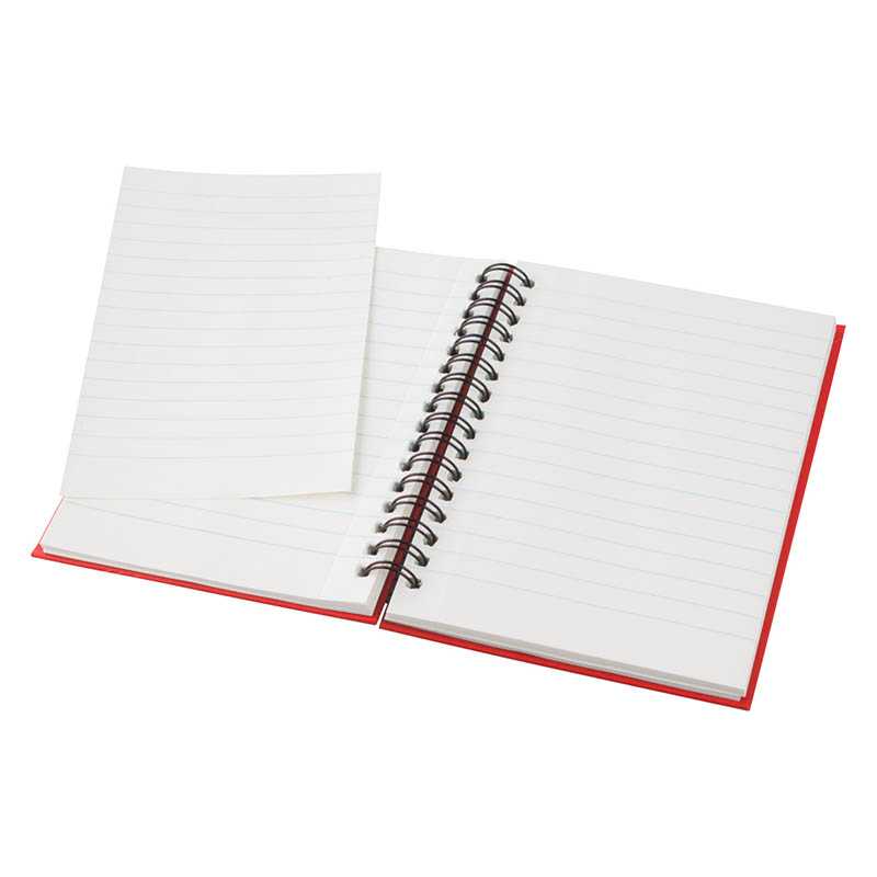 Poznámkový blok so 100 listami, záložkou a gumičkou.