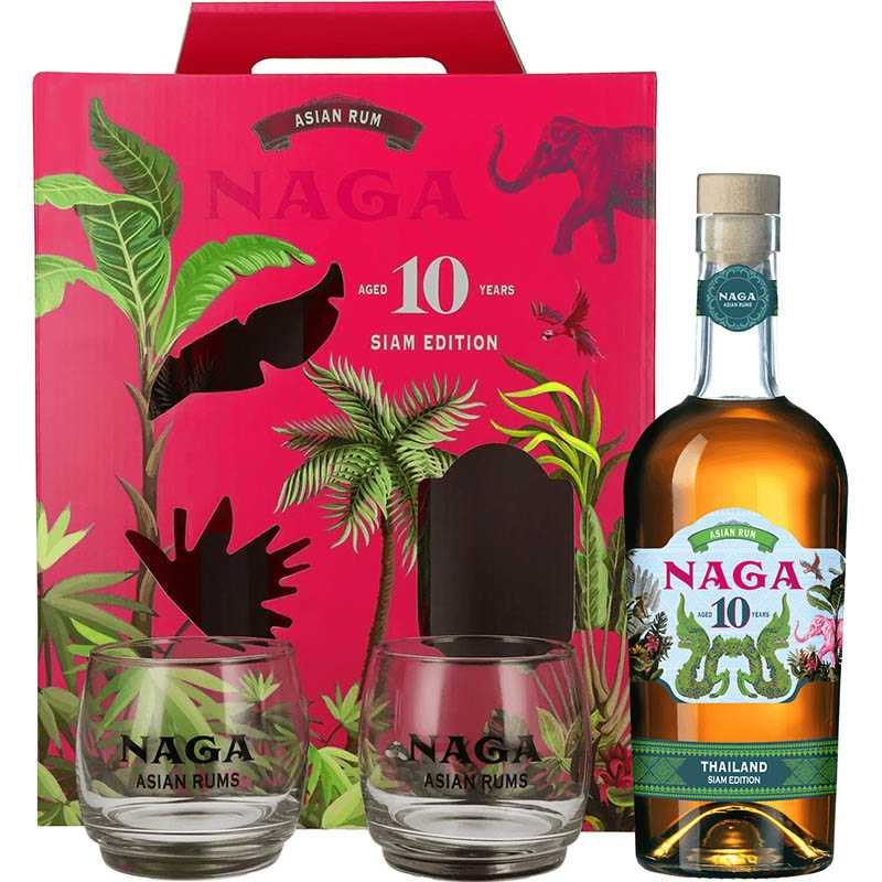 Exotický rum z Indonézie – Naga?Siam Edition 10 ročný kombinuje precíznu ázijskú výrobu s tropickým zrením v sude. Fľaškovaný s? 40?% ABV, predstavuje sofistikovaný rumový zážitok. Naga Siam Edition 10 ročný je vyrobený z melasy z trstiny pestovanej na plantážach priamo pri destilérii na severe Jávy. Destilovaný je päťnásobne v kolónových destilačných systémoch a následne zreje desať rokov v 200-litrových sudoch amerického bieleho dubu po bourbone, uložených v podzemnom sklade s konštantnou teplotou, kde „angel's share“ dosahuje 7 – 9?% ročne. Nádych karamelu, vanilky, kandizovaného ovocia a jemných korenín sa kombinuje s dubovými a tabakovými tónmi. Na jazyku zanecháva bohatý, exotický profil – vanilku, korenie, dub a jemný nádych tabaku, ktoré postupne prechádzajú do dlhého záveru s tónmi drevitého tabaku. Názov „Naga“ pochádza z ázijskej mytológie — mytického hada-strážcu pokladov, čo reflektuje spojenie prírodných bohatstiev a regionálnej tradície. Rum stelesňuje dedičstvo Batavia arracku, destilátu známeho na Jave už od 15. storočia. Darčekové balenie spolu s dvoma pohármi.