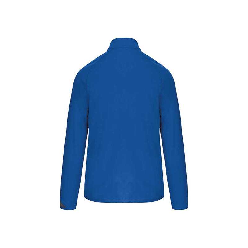 100% brushed polyester tricot. Zip neck. Contrast panel details. Matching topstitch. Elasticated hem and cuffs.