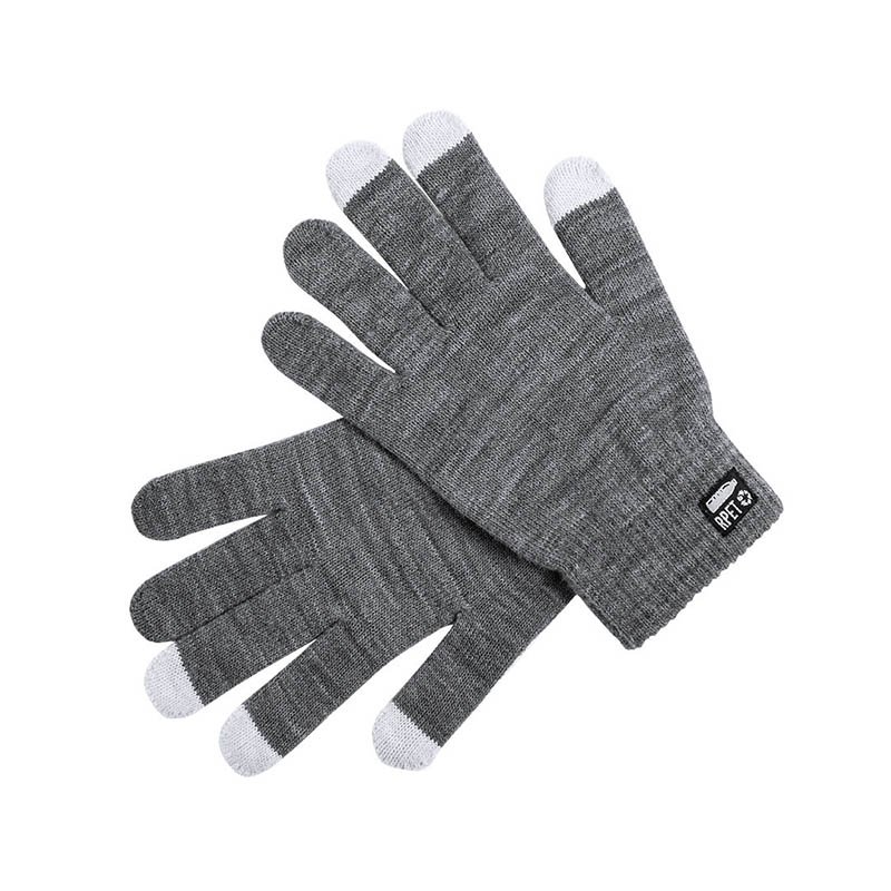 Rukavice vyrobené z RPET a mäkkého akrylu so špeciálne vyhotovenými špičkami na palci, ukazováku a prostredníku, ktoré umožňujú použitie smartfónov bez vyzliekania rukavíc, ideálna zimná pomôcka.