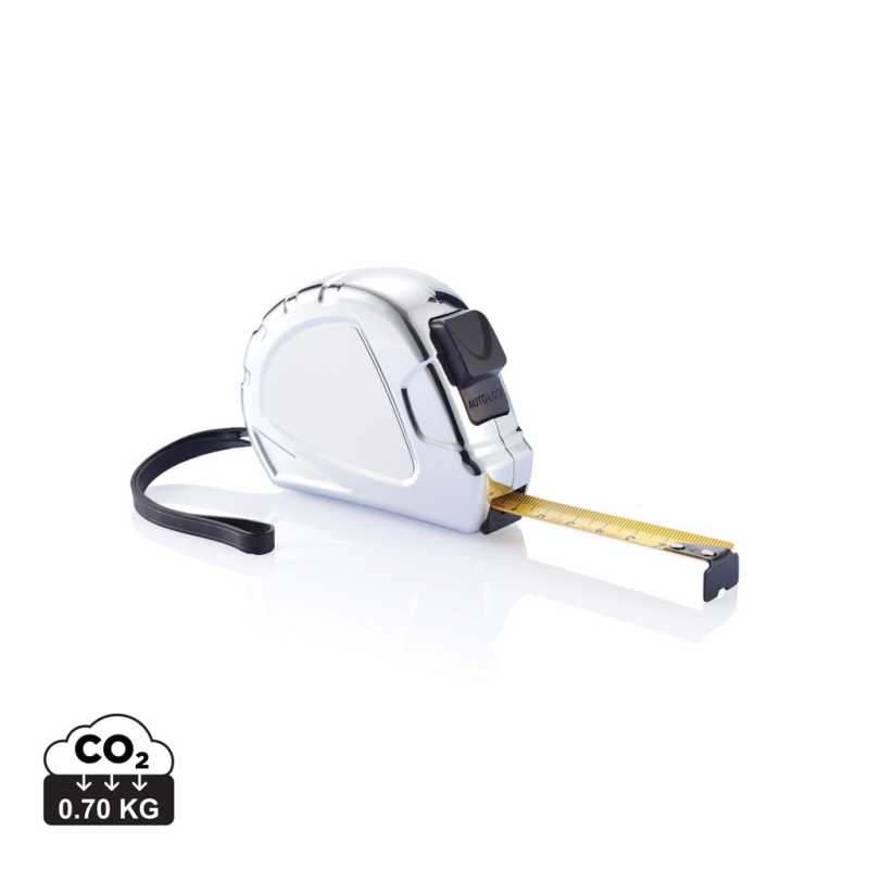 ABS chrómovaný zvinovací meter 3 m/16 mm. Čierna zarážka, remienok a spona z nerez ocele.