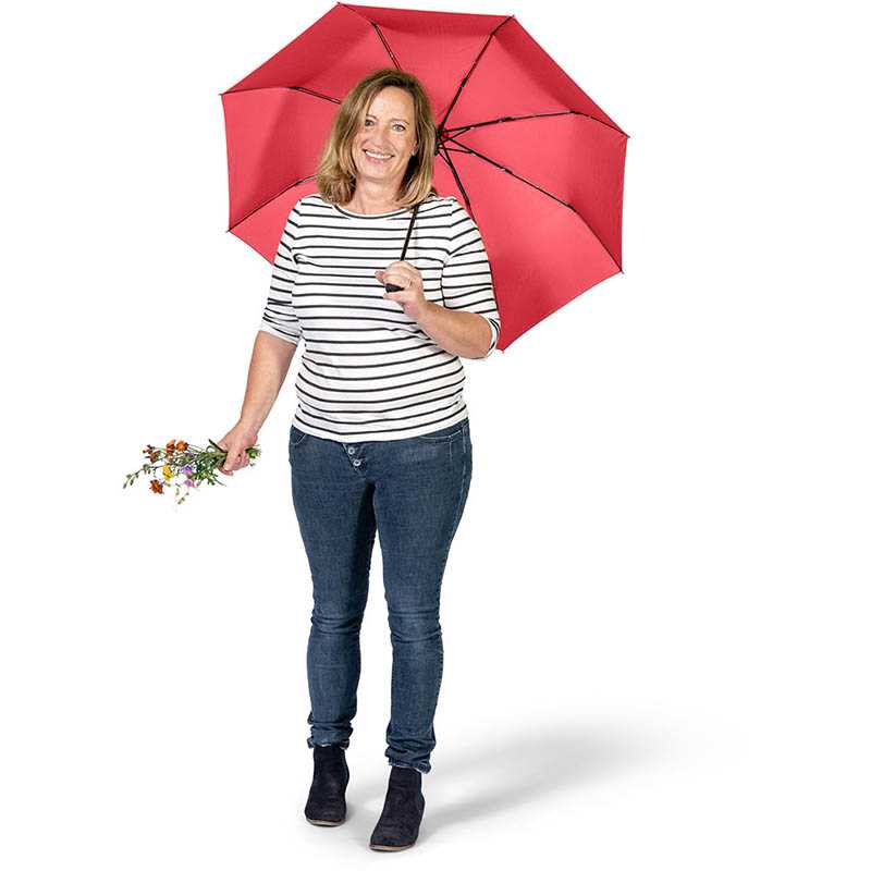 Convenient automatic open/close function for quick opening and closing, high-quality Windproof PLUS system for maximum frame flexibility in stormy conditions, comfortable Soft-Feel handle with integrated push-button, elastic loop and promotional labelling option