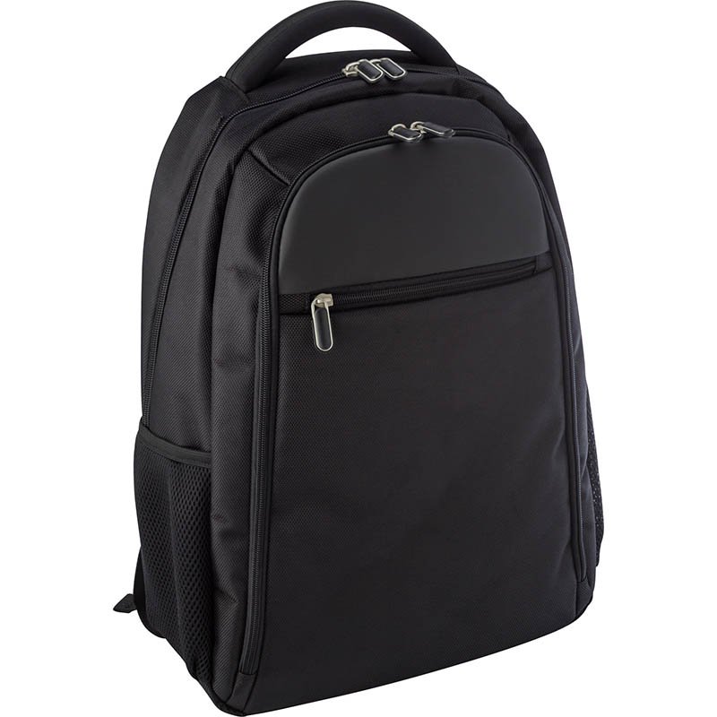 Polyester (1680D) laptop backpack with padded laptop compartment (15 inch) with padded and zippered front pocket.
