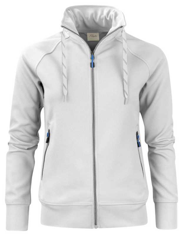 Sporty polyester full zip sweater with raglan sleeves and a two-tone drawstring. Front zip and zipped pockets with contrasting zipper puller. Hidden zipper in the collar to easily replace the drawstring. Size: XS-2XL