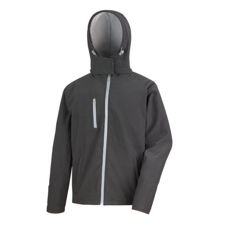 Inner storm flap. Decorative back yoke. Full front zip.Zip closing front pockets. Detachable, adjustable hood. Micro fleece inner provides extra warmth. Soft, high stretch fabric & comfortable active cut. Open cuff & hem. Fashionable shaped longer back panel. TX 3 Layer Performance Fabric. Značka : RESULT . Materiál : 93% polyester / 7% elastan