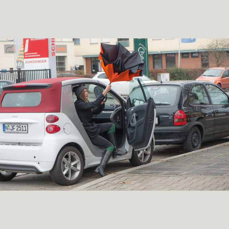 REVERSE "opačne fungujúci" skladací dáždnik z materiálu 190T pongee s "C" rukoväťou pre ľahké uchytenie na zápästí. Vďaka tomuto riešeniu môžete mať vždy voľné obe ruky.