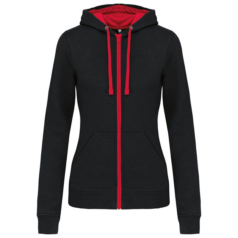 80 % česaná bavlna/20 % polyester (oxfordská sivá: 76 % česaná bavlna/21 % polyester/3 % viskóza).Kartáčovaný flís.Klokanie vrecko s prístupom pre slúchadlá.Rebrované manžety a lem.Podšitá kontrastná kapucňa so sťahovacou šnúrkou.Kontrastné zapínanie na zips.Certifikát STANDARD 100 podľa OEKO-TEX®N° CQ1007/7, IFTH.
