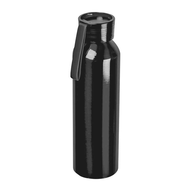Recyklovaná hliníková fľaša s priehľadne zafarbeným viečkom, objem: 600 ml. Ekologická a praktická na cesty.