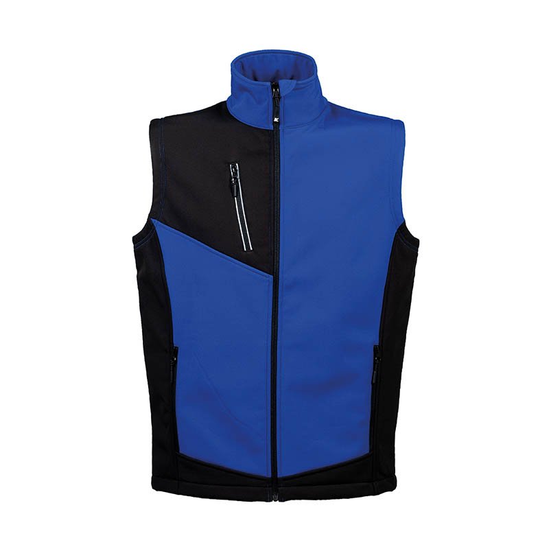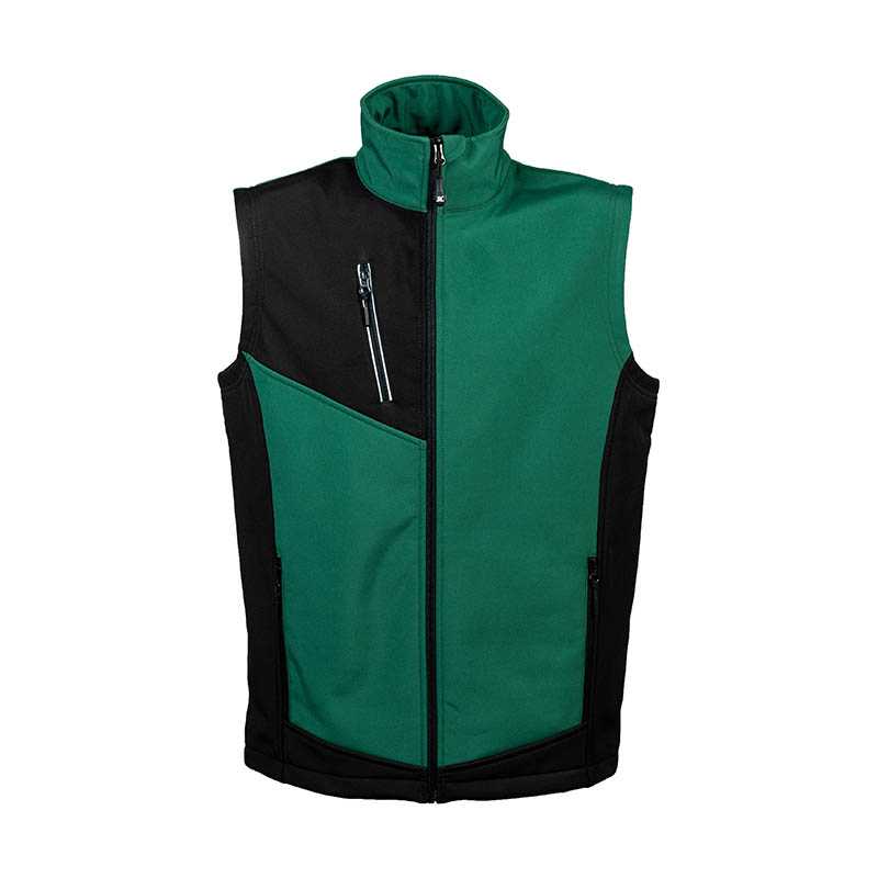 NOVINKA 2025. Waterproof 3-layer soft shell vest - 95% polyester - 5% elastane - Waterproof 8000 mm/H2O - Breathability 1000 g/M2/24h - Anti-pilling fleece interior - Internal neck reinforcement tape with hanger hook - YKK taped zippers - A chest pocket with zip with reflective taping - Two external pockets with zip - Rear reflective print on the back - Chin protection fabric with reflective print - Drawstring at the bottom