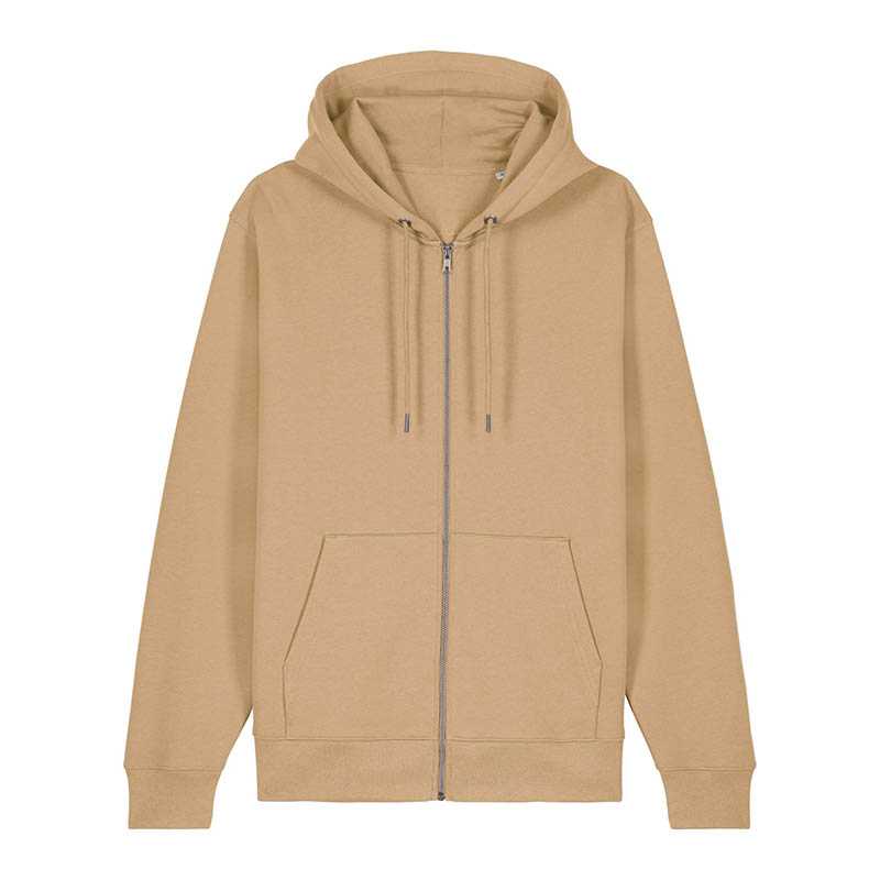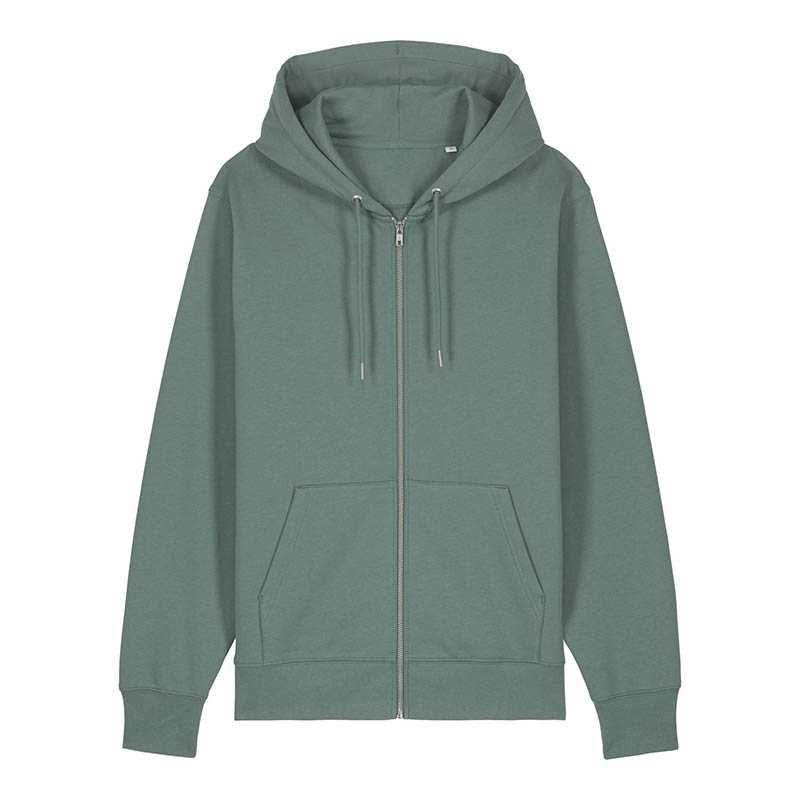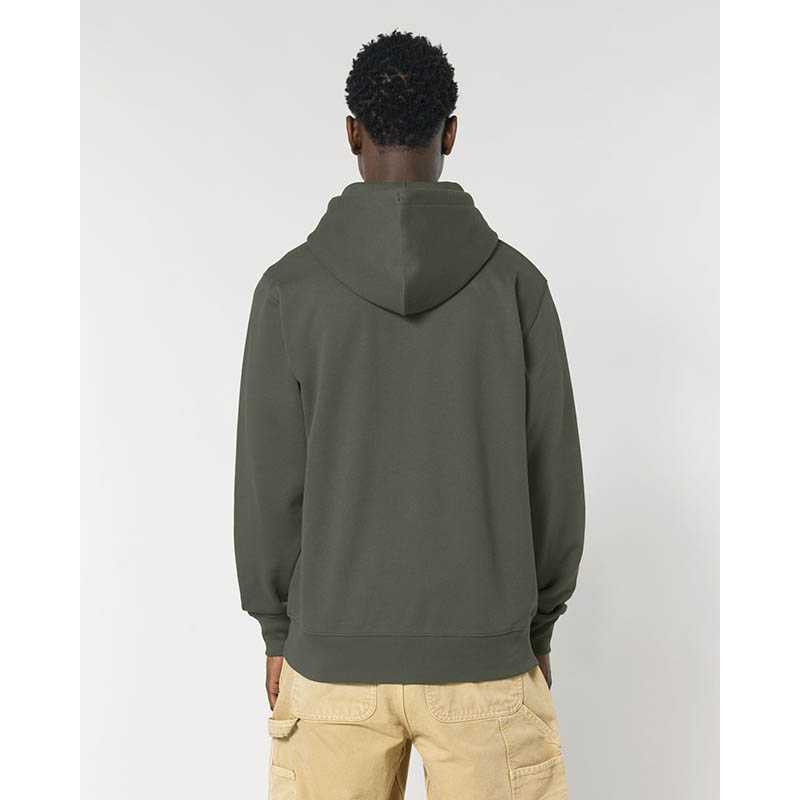 Kruhově dopřádaná bavlna. Designová dvouvrstvá kapuce. Velká klokaní kapsa. Kapsa na rukávu se zipem. Manžety ze sladěné tkaniny