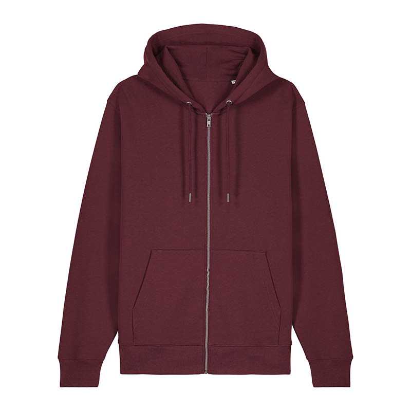 Bavlna s dlouhými vlákny. Kruhově dopřádaná bavlna. 3vláknitá tkanina pro hladký povrch. Dvouvrstvá kapuce. Žebrování s elastanem pro lepší stabilitu. Dvojité prošívání. Dvojité barvení. Česaná vnitřní úprava. Bez potisku lze prát při 60 °C