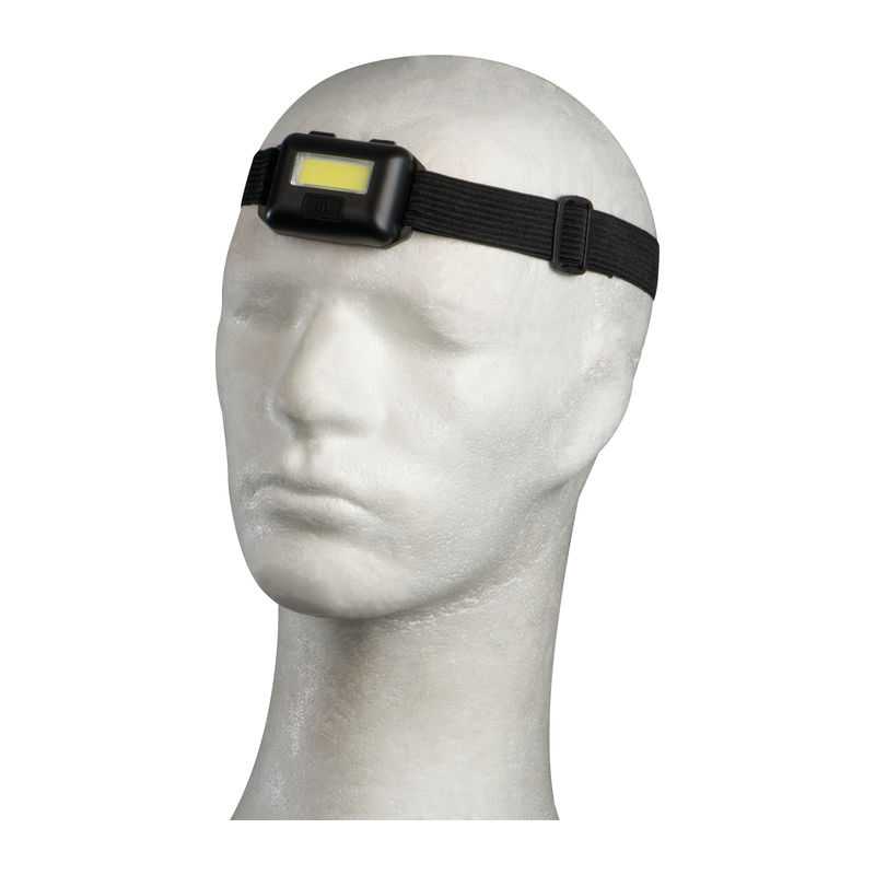 ABS headlight with COB LED. Emits a large bright, white light. On adjustable elastic strap. Extremely suitable for outdoor activities in the dark. Incl. cell batteries. Per piece in box.