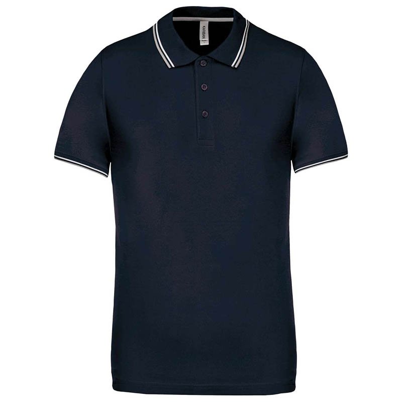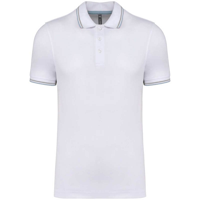 Kvalita.100 % prstencovo spriadaná bavlna.Štýl.Rebrovaný 1 x 1 golier a manžety.Výstužná páska na krku.Krátke rukávy.Kontrastné pruhy na golieri a manžetách.3 gombíky s légou tón v tóne.Priliehavý strih.Strihané a šité.Rázporky naboku.Náhradný gombík na vnútornom šve.