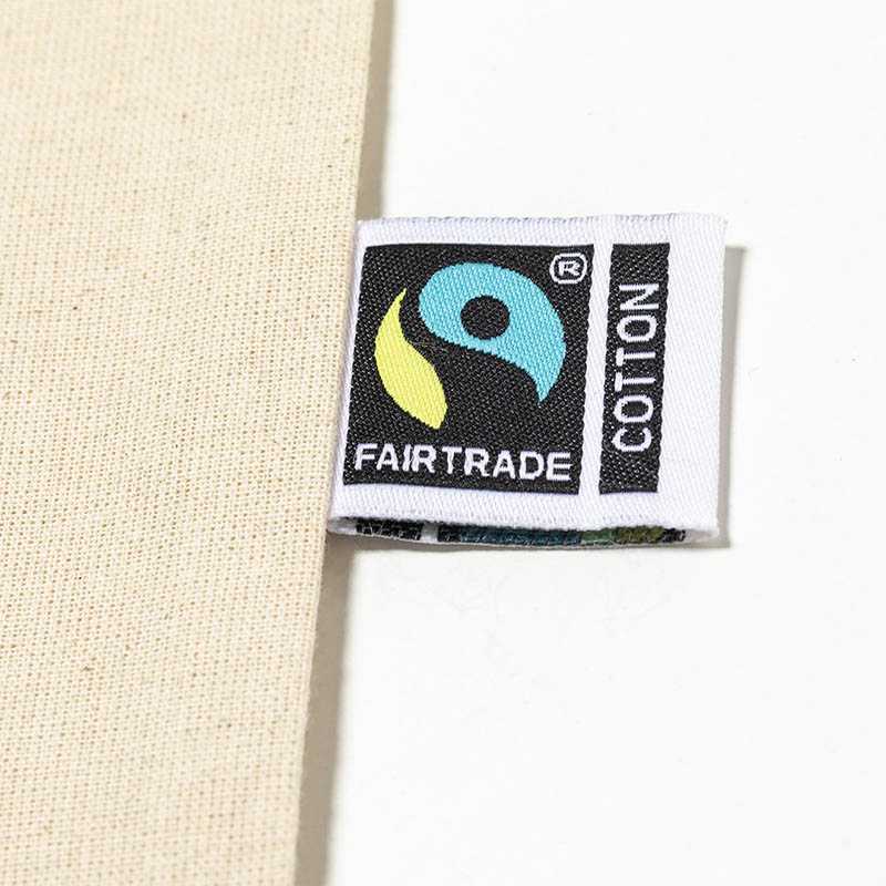 NOVINKA 2025. Fairtrade line bag, made in cotton of 120g/m2. Stitched finish, with 70 cm lenght handles and resistance up to 7kg, including Fairtrade label and hangtag in recycled cardboard. With Fairtrade certification, an alternative to the conventional trade system that pursues the development of peoples and the fight against poverty.