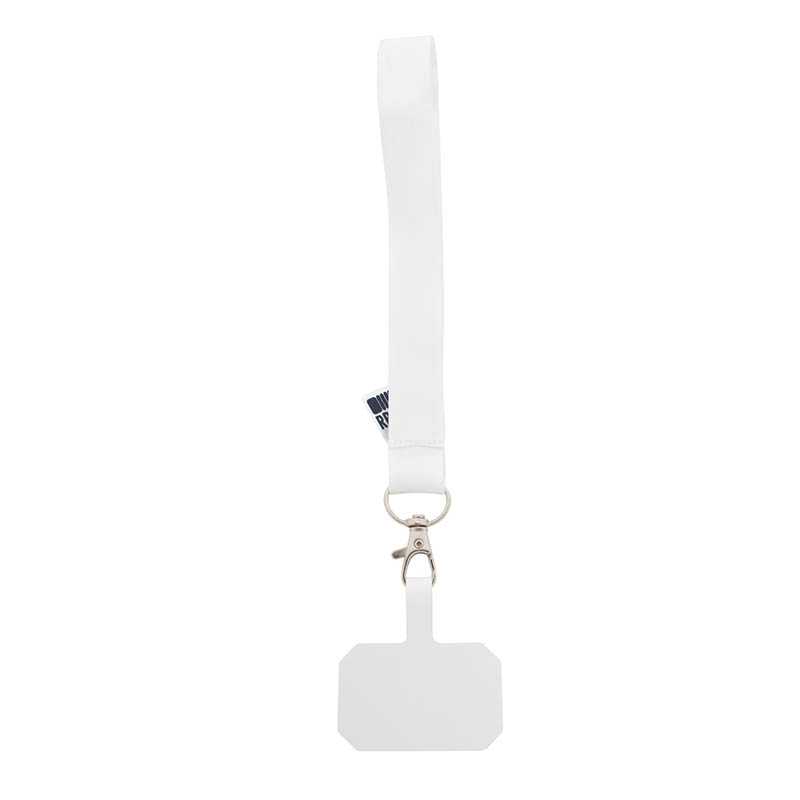 Na zákazku vyrobený RPET náramok na mobil s kovovou karabínou a farebne potlačenou vložkou na telefón z odolného papiera. So sublimačnou tlačenou grafikou na oboch stranách, nezahŕňa tlačovú prípravu. Min. mn.: 100 ks.