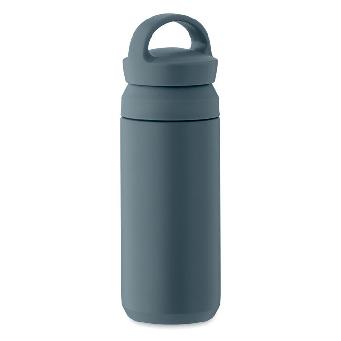 NOVINKA 2025. Thermal bottle made of Recycled Stainless Steel with double wall and 500 ml capacity. Exterior with a matte beveled finish. Includes screw cap with flexible PP handle. Includes Recycled Stainless Steel label.Steel is one of the most demanded materials and can be found almost everywhere, from daily-use products to large constructions. With countless properties, among which durability and high level of reusability stand out, making it a highly valued alternative in sustainability solutions. Properly treated, it allows obtaining new resources of infinite use.