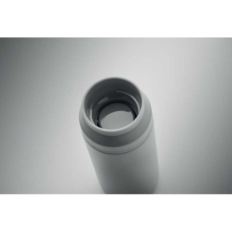 Dvoustěnná vakuová izolační láhev z recyklované nerezové oceli (90 % recyklované nerezové oceli a 10 % nerezové oceli) s dvojitým otevíracím víčkem z PP pro snadné čištění. Objem: 320 ml.