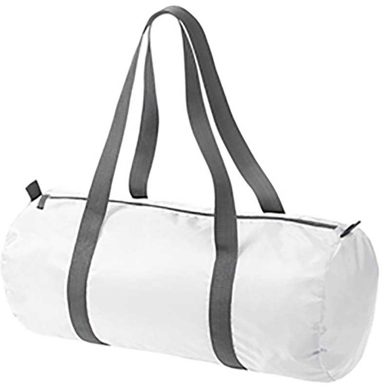 Polyester (600D) sports bag with a zippered compartment and adjustable carry strap.
