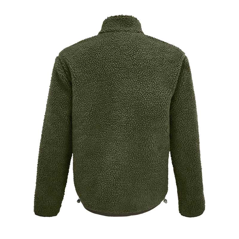 NOVINKA 2024. Bicolour sherpa fleece sweater. Contrast fabric on chest and piping along the edges of the seams. Chest pocket and side pockets with zippers. Colors: 600 navy, 704 moss green, 900 black Sherpa fabric: 100% Recycled Polyester, 400 g/m2 (GRS) Contrast fabric: 50% Recycled Polyester 50% Polyester, 160 g/m2 S-4XL