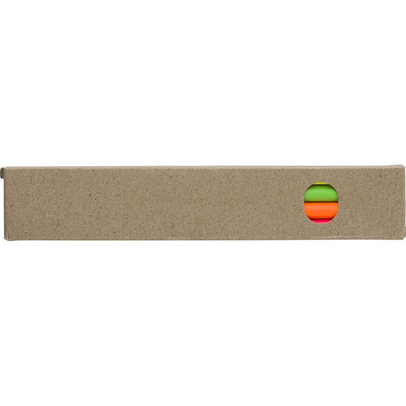 Wooden highlighter pencil set with 4 colour pencils (yellow, orange, pink, and green) in paper box.