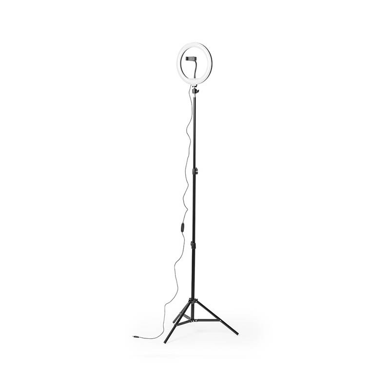NOVINKA 2025. Lighting set. Including light ring, table tripod, and floor tripod with adjustable height up to 180cm. 120 LEDs, with 3 lighting positions and 10 adjustable light intensity levels. USB power supply. Cable with controller and remote shutter included. Presented in an attractive design box.