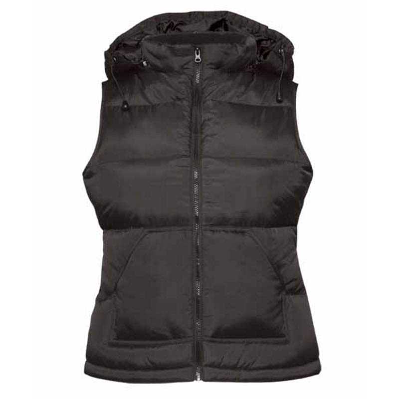 Feminine fitted design , Full zip opening , Padded hood with feather touch, removable with a zip , 2 side pockets , Adjustable bottom hem (with draw cord and stoppers), lining and accessories in matching colours, Easy access for decoration via an invisible zip in the middle of the back, Large back area without stitching for easy decoration, Trendy down feminine bodywarmer, Quality, Out: 100% waterproof taslan full-dull nylon with soft-feel coating, In: 100% padded Taffeta® polyester lining with feather touch, Professional informations, 1 pc/pack & 10 pcs/carton. BS31 Značka : B&C . Materiál : 100% nylon