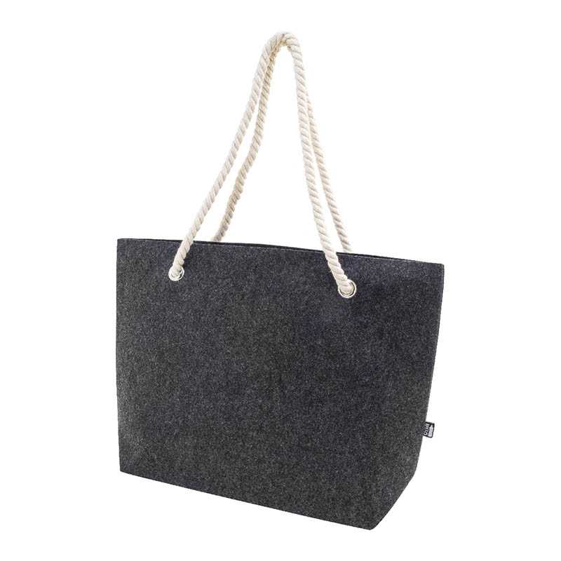 Plstěná nákupní taška z RPETu s dlouhými držadly a složeným dnem. Tloušťka plsti: 2 mm.