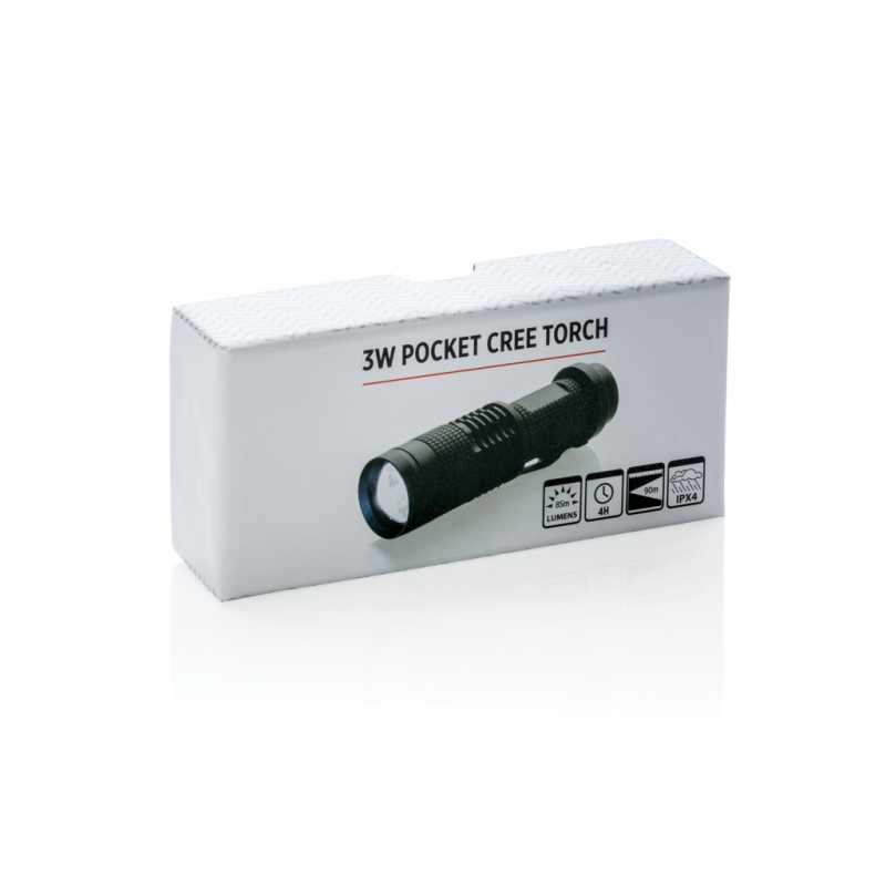 Kompaktné avšak super svietivé 3W CREE svietidlo. Vďaka svojej vreckovej veľkosti je nenáročným spoločníkom na cesty, pripravený kedykoľvek pomôcť rozzážit tie najtemnejšie zákutia. 85 lumenov, prevádzková doba okolo 4 hodín. Vyrobené z odolného hliníka. Vrátane batérií pre okamžité použitie.