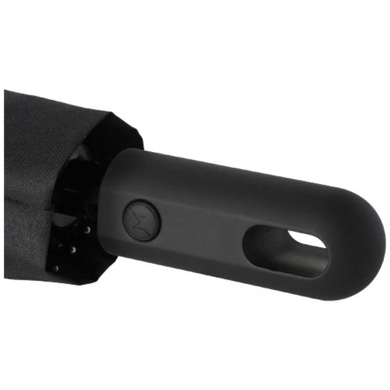 Trojdílný deštník s automatickým rozevíráním a skládáním, exkluzivní design. Černé kovové kopí, žebra ze skelných vláken a plastová rukojeť potažená pryží. Dodává se s pouzdrem v barvě shodné s barvou potahu. Skládá se až na velikost 31 cm.