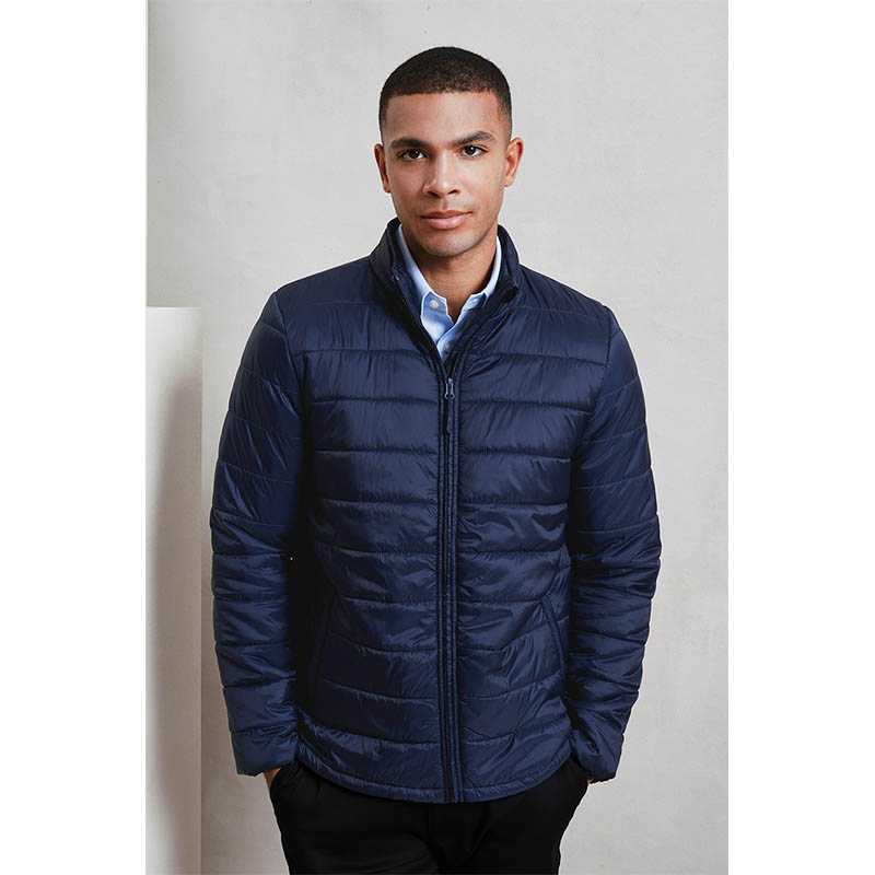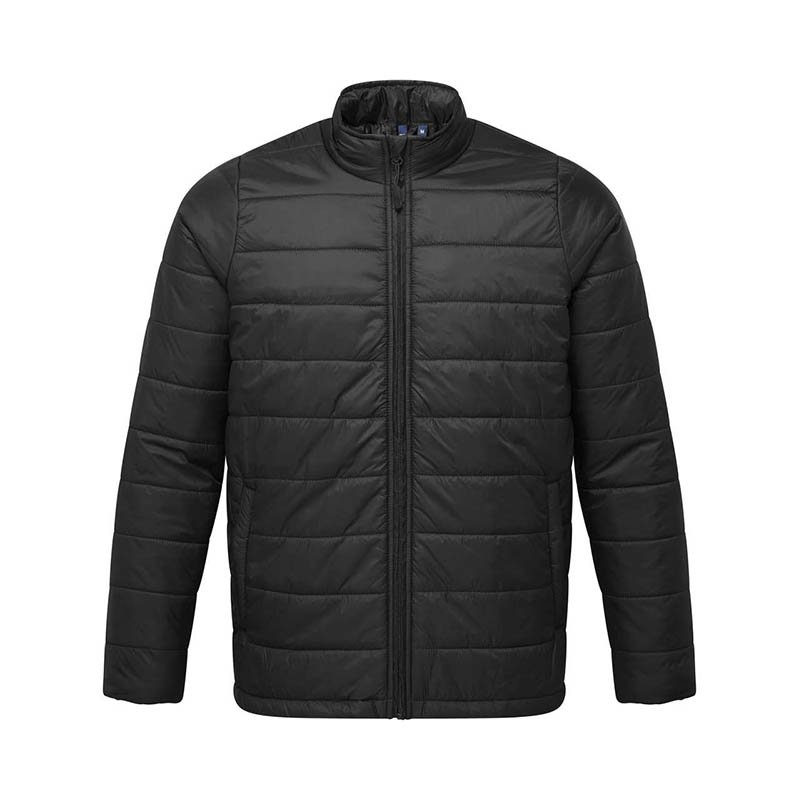 Vnější vrstva: 100 % recyklovaný nylon.Podšívka a výplň: 100 % recyklovaný polyester.38 gsm.Zateplená bunda na zip s vodorovným lemováním.Dvě boční kapsy na zip.Teplé, lehké a odolné proti vodě.Recyklovaný polyester z použitých 48 plastových lahví.Certifikace Global Recycled Standard (GRS).