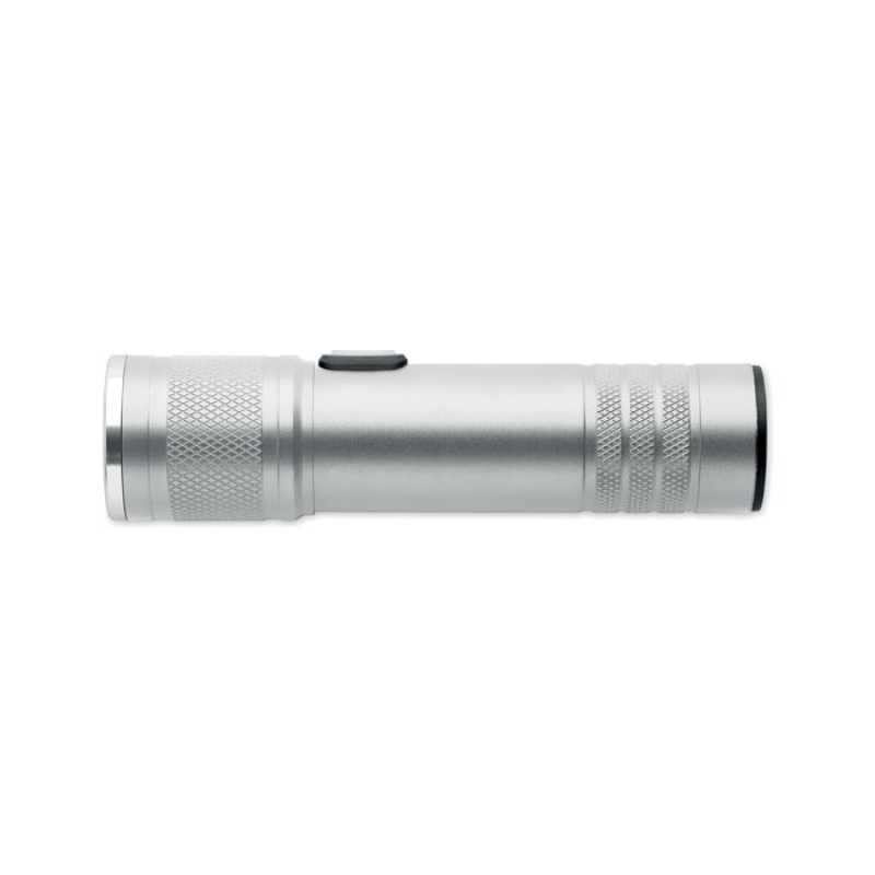 Dobíjecí COB svítilna z recyklovaného hliníku. 100 lumenů, 3 světelné módy a funkce zoom. Vestavěná dobíjecí baterie s kapacitou 800 mAh. Nabíjecí kabel je součástí dodávky.