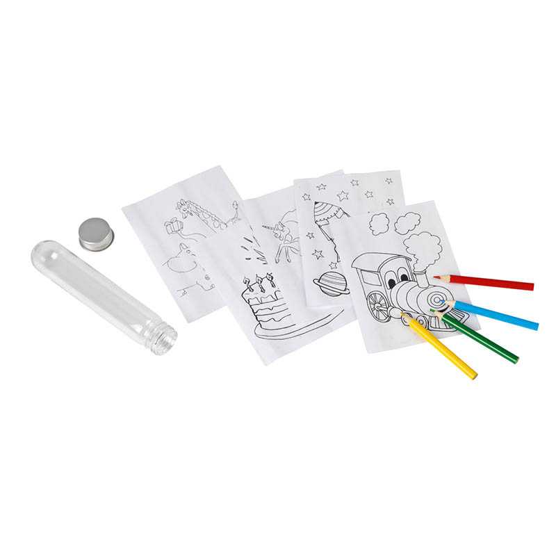 Colouring set TUBY, in a tin: 4 pencils in different colours, sharpened, 5 colouring sheets with different designs to colour in