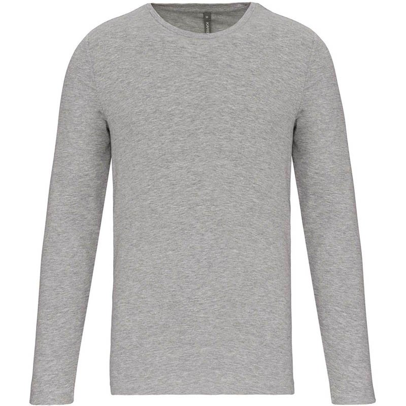Fitted long sleeve T-shirt for men features collar with rib binding and made of durable single jersey cotton. collar with rib binding, side seams, small size label in the collar, care label in the side seam