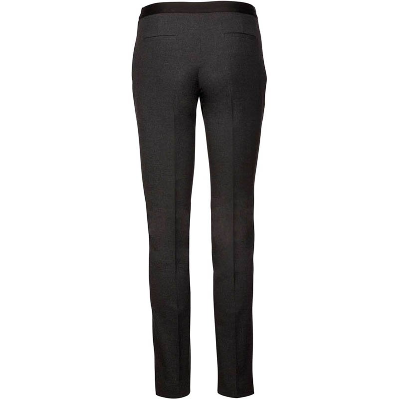 64 % polyester/34 % viskóza/2 % elastan.Nohavice úzkeho strihu.2 predné talianske vrecká a 2 zadné vrecká s lemovaním.Zapínanie na zips so skrytým háčikom a gombíkom.Elastický pás na zadnej strane pre optimálne pohodlie.Vnútorná strana nohavice: 30 palcov (78 cm).Nohavice s neviditeľnými lemami.Certifikát STANDARD 100 podľa OEKO-TEX®N° CQ1007/8, IFTH.