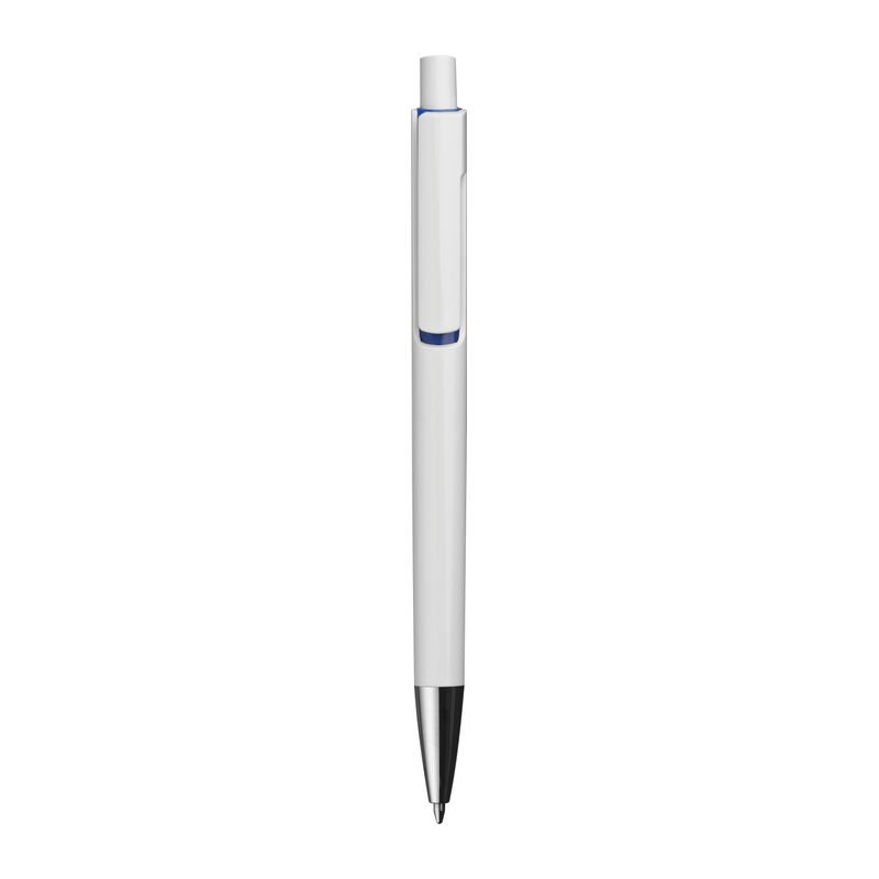 Plastové guľôčkové pero s lesklým klipom a špičkou, s modrou náplňou.