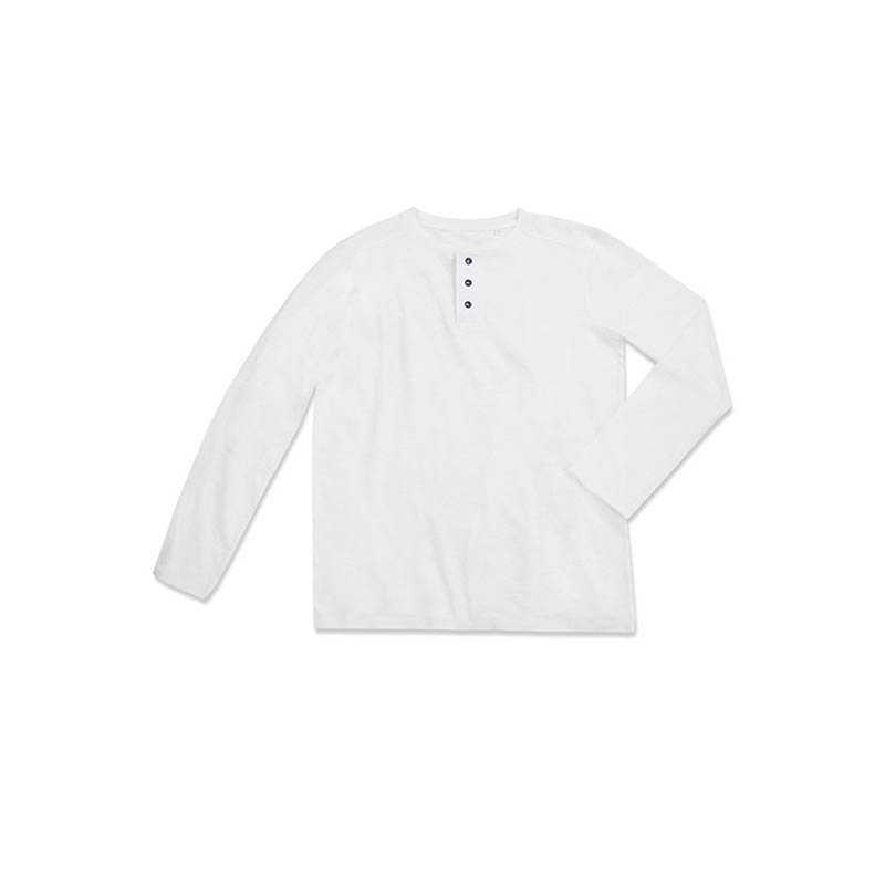 Fashionable Henley long sleeve T-shirt for men, made of soft slub yarn for a texturised look with a wide 3-button placket and decorative flatlock seams.zigzag stitches on seams, rib collar, 3 metal buttons (nickel-free), wide placket, front yoke, neck tape, side seams, small size label in the collar, care label in the side seam