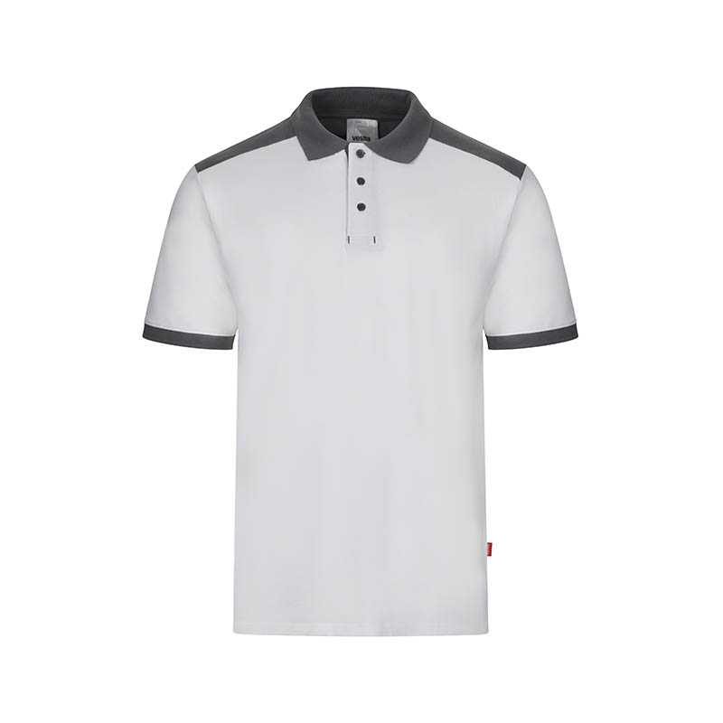 Central button Ribbed neck and cuffs Contrast colour on chest and back yoke, buttons and inside button placket Side vents